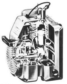 Vergaser mit Anschluß für Fernbedienung durch Startseilzug |