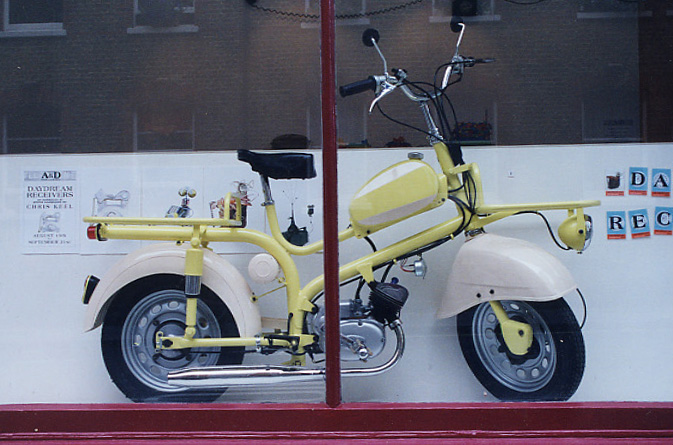 Massenheimer Oldietreffen 2001: In der Mitte meine Express 151, links eine Rabeneick und rechts eine Express 150. Alle drei mit SACHS SM 51. Zwar nicht so weit weg von meinem Zuhause (ca. 7 km), aber dafür das wahrscheinlich kleinste SACHS-Treffen der Welt. Die Amsler Pony Junior (Schweiz) mit Saxonette Motor von Roger Suter. |