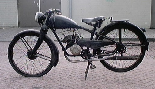 Die DKW 508, ein weiteres Kleinmofa mit einem 502/1B Ausf. A von Herbert Gilch. Herr Gilch sucht zu diesem Teil noch einen originalen Tank! Der montierte ist von einer Puch X5C-2M. Wer helfen kann, hier ist seine Telefonnummer: 05601-1273 Die HMW 98 von Gerke Noordmans. HMW heißt übrigens Hainsberger Motorenwerke (Sachsen). |