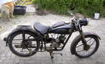 Eine Hercules 320 mit 175 cm³ SACHS-Motor. Der kleine Junge auf dem Stühlchen ist Heinrich Christen, der mir das Foto geschickt hat. Das Krad gehörte dem Vetter seiner Mutter. Die Blixt (Schweden) aus Nymanbolagen, Baujahr 1952 mit Sachs SM51 von Leo Eiranen, Finnland. |