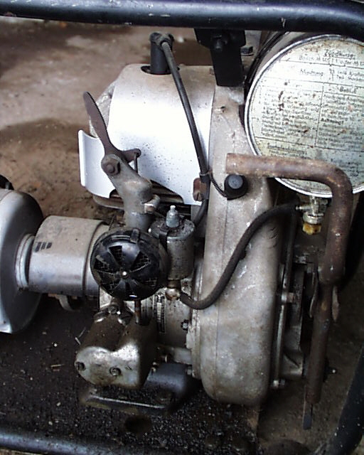 Daß man mit Sachsmotoren nicht nur fahren kann, beweisen diese Bilder eines Eisemann- Stromerzeugers. Motor Stamo 98. 2 kW Leistung bei 220 V und 3000 U/min. |